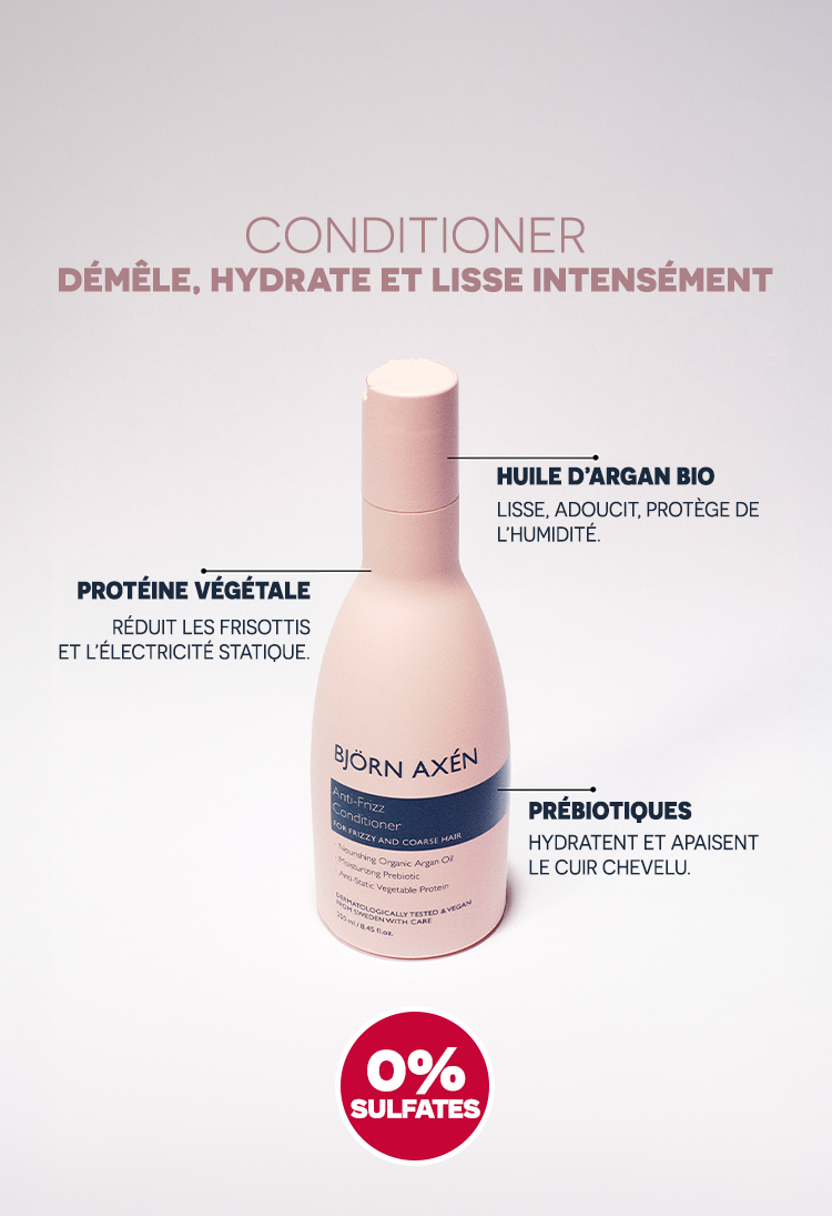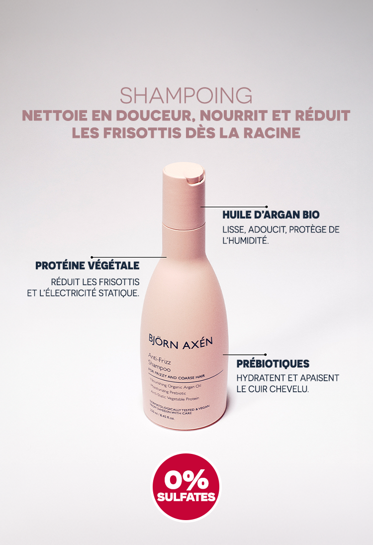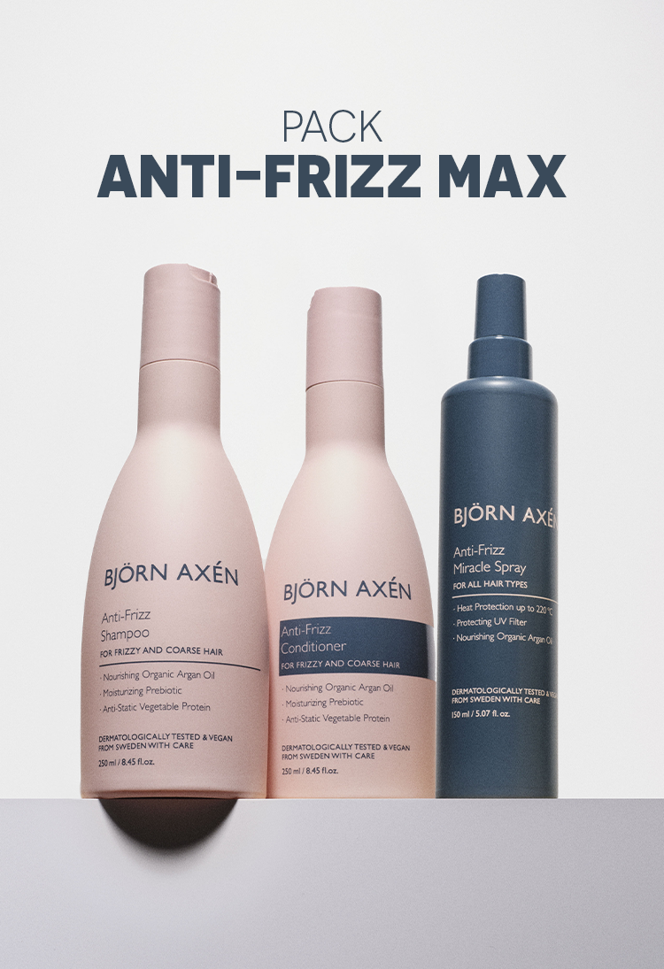 Le Pack Anti-Frizz MAX Björn Axén est une routine capillaire complète en 3 étapes, spécialement formulée pour hydrater, lisser et contrôler les frisottis des cheveux bouclés, frisés ou indisciplinés.