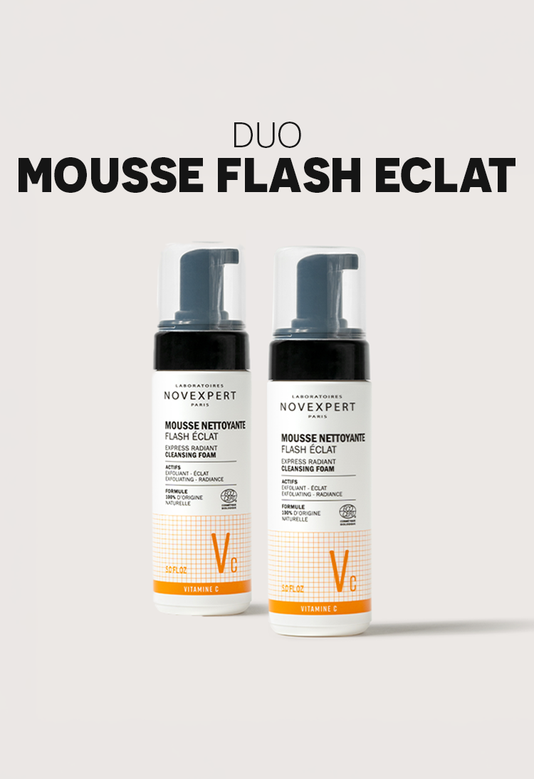 Offrez à votre peau un double nettoyage + éclat instantané avec ce pack exclusif de 2 Mousses Flash Éclat.Sa texture mousse onctueuse permet en un seul geste de nettoyer, démaquiller et exfolier la peau pour un véritable effet “peau neuve”. Grâce à son double peeling enzymatique + biologique, elle élimine les cellules mortes et révèle un teint plus lumineux en seulement 20 secondes.